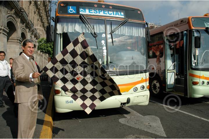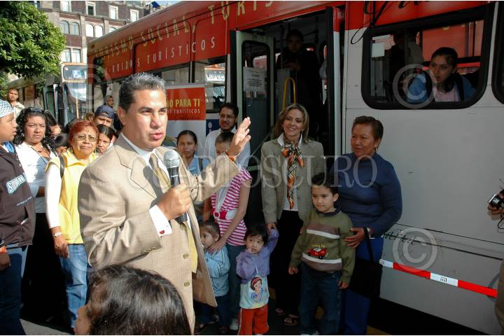 MÉXICO, D.F., 15JULIO2009.- El secretario de turismo Alejandro Rojas Diaz Duran durante el banderazo de salida de los autobuses del RTP para el programa "Turismo para ti" que recorrerá diferentes sitios turísticos en todo el Distrito Federal. FOTO:RODOLFO ANGULO/CUARTOSCURO.COM