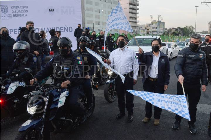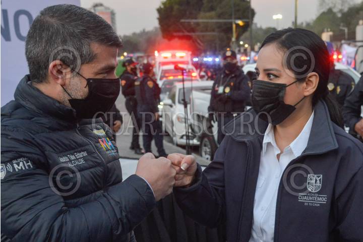 Sandra Cuevas, alcaldesa de Cuauhtémoc, y Mauricio Tabe alcalde de Miguel Hidalgo, encabezaron el banderazo de salida del operativo blindaje navideño el cual busca reforzar la seguridad para disminuir la incidencia delictiva durante la temporada decembrina.