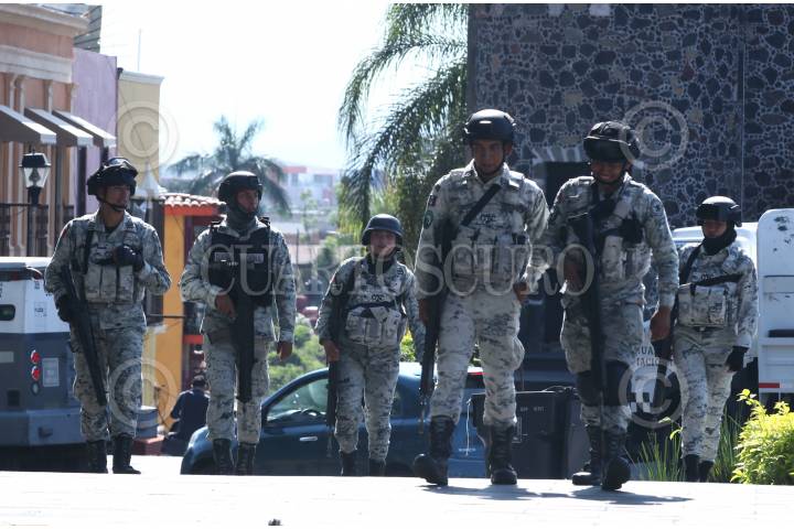 CUERNAVACA, MORELOS, 27MAYO2024.- Patrullas de 8 elementos de la Guardia Nacional realizan recorridos de vigilancia en el centro de la ciudad. FOTO: MARGARITO PÉREZ RETANA/CUARTOSCURO.COM