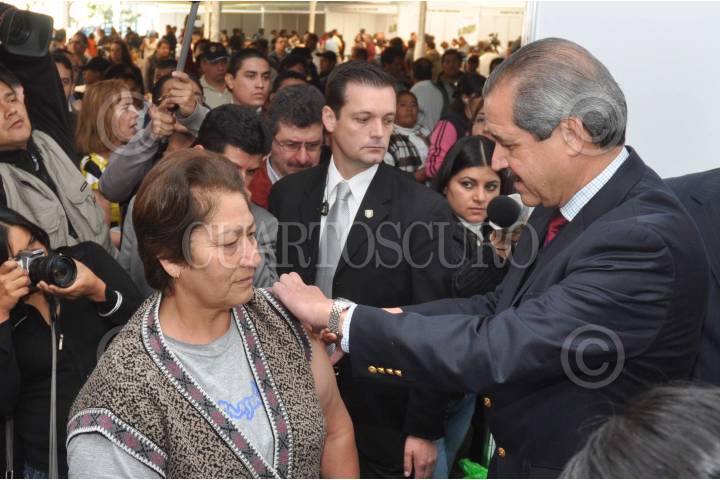 MÉXICO, D.F., 22ENERO2010.- Los secretarios de salud, federal José Angel Cordova Villalobos y local Armando Ahued dieron inicio a la campaña de vacunación contra la influenza A H1N1 en los mercados; también recorrieron los puestos de vacunación en el metro. FOTO: EDUARDO MORALES./CUARTOSCURO.COM