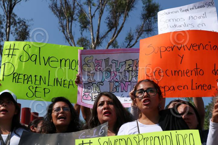 CIUDAD DE MÉXICO, 05NOVIEMBRE2019.- Inconformes se manifiestan a las afueras de la Cámara de Diputados por el anuncio de recortes al programa de Prepa en Línea de la SEP. FOTO: GALO CAÑAS /CUARTOSCURO.COM