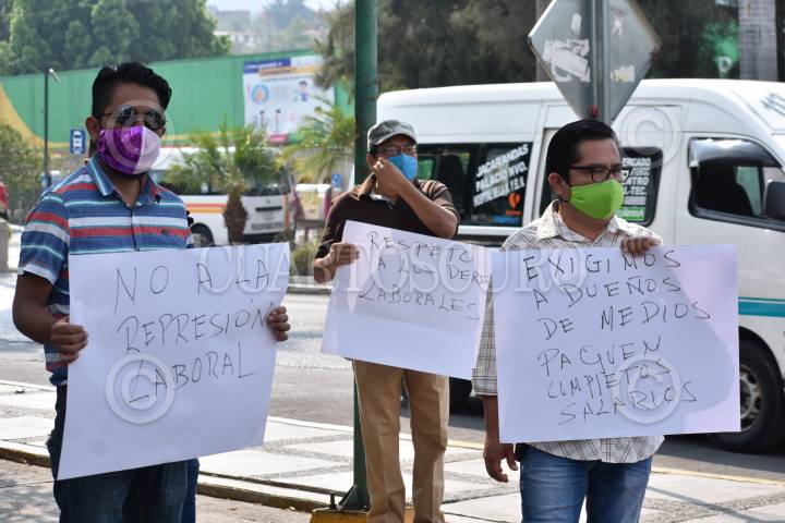 Periodistas de diversos medios de comunicación, tanto locales como estatales y corresponsales nacionales, protestaron en Chilpancingo para exigir un alto a los recortes salariales y despidos injustificados.