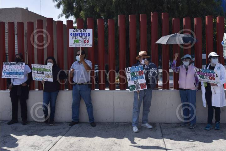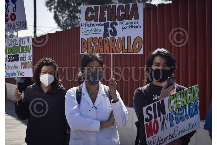 Estudiantes y docentes del Centro de Investigación y de Estudios Avanzados del Instituto Politécnico Nacional (Cinvestav) se manifestaron al exterior de la Cámara de Diputados, por su desacuerdo en la desaparición de los 109 fideicomisos que se prevé se ponga a votación durante la sesión ordinaria de este jueves.