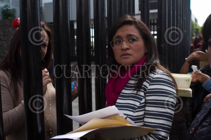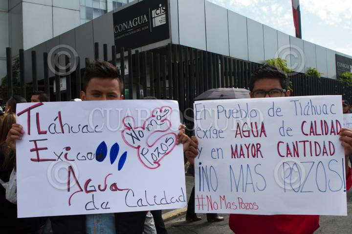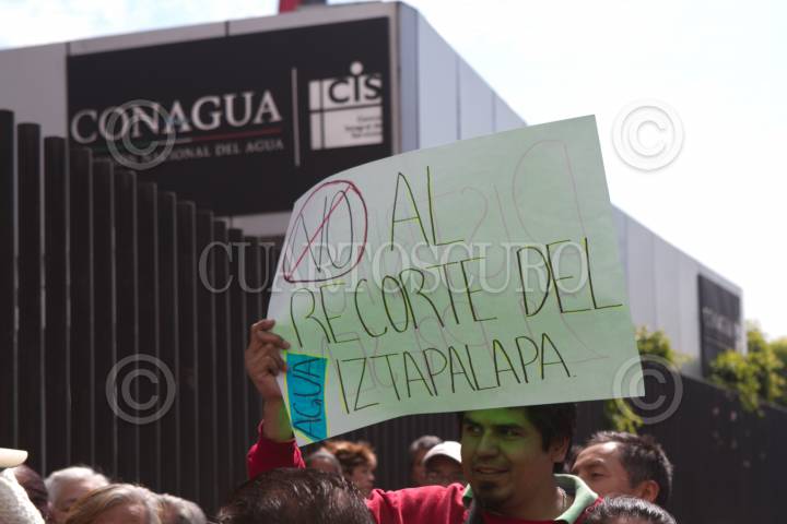MÉXICO, D.F., 25ENERO2016.- Vecinos de la delegación Tlahuac e Iztapalapa encabezados por la diputada de Morena Aleida Alavez se manifestaron en las instalaciones de Conagua en donde se opusieron al recorte del agua potables que se tiene planeado para este fin de semana, con el argumento de obras de mejoramiento al Sistema Cutzamala. FOTO: MOISÉS PABLO /CUARTOSCURO.COM