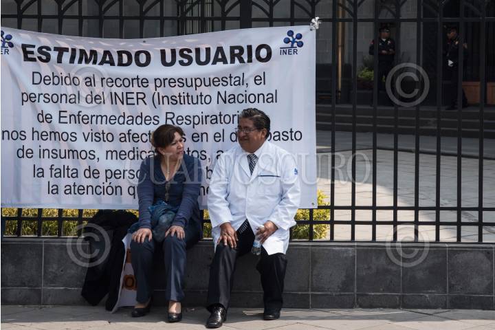 CIUDAD DE MÉXICO, 13FEBRERO2019.- Trabajadores sindicalizados del Instituto Nacional de Enfermedades Respiratorias (INER), se manifestaron al exterior de las instalaciones de la Secretaría de Salud, para manifestarse en contra del recorte presupuestal previsto por el Gobierno Federal. Demandanademás la falta de insumos médicos, y disminución en sus salarios. FOTO: MARIO JASSO /CUARTOSCURO.COM