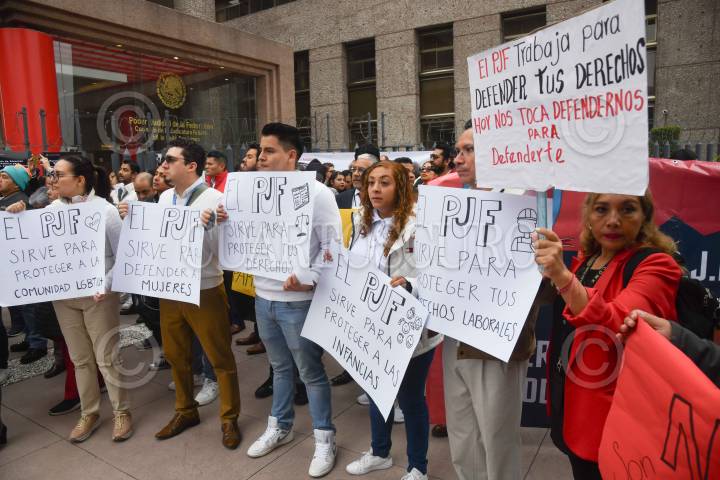 CIUDAD DE MÉXICO, 17OCTUBRE2023.- Integrantes del Sindicato de Trabajadores del PoderJudicial de la Federación (PJF) se manifestaron al exterior del Consejo de la Judicatura Federal Edificio Sede San Lázaro para exigir al Poder Legislativo se respeten sus derechos ante la extinción de trece fideicomisos del PJF. FOTO: MARIO JASSO/CUARTOSCURO.COM