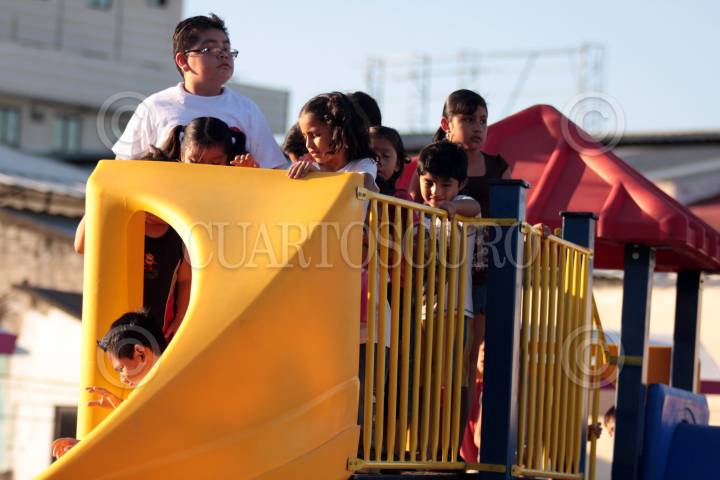 VILLAHERMOSA, TABASCO, 09MARZO2009.- Con una inversión de 4 millones trescientos mil pesos fue inaugurado el parque recreativo María Padrón que se ubica en la colonia Primero de Mayo en donde se benefician alrededor de 11 mil habitantes. En la imagen niños y niñas ponen a prueba la resistencia de los juegos infantiles y juveniles. FOTO: MARCO POLO GUZMÁN HERNÁNDEZ/CUARTOSCURO.COM