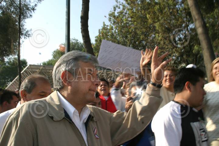 MEXICO, D.F. 20FEBRERO2005.- Andrés Manuel López Obrador, jefe de gobierno de la ciudad de México, saluda a la gente que lo esperaba en unidad Infonavit Iztacalco donde inauguró un centro recrativo. FOTO: Nelly Salas/CUARTOSCURO.COM