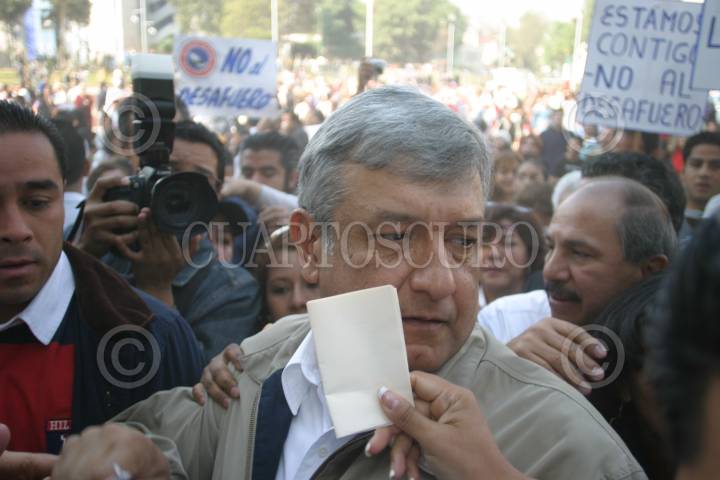 MEXICO, D.F. 20FEBRERO2005.- Vecinos de la delegación Iztacalco manifestaron su rechazo al posible desafuero del jefe de gobierno de la ciudad de México. FOTO: Nelly Salas/CUARTOSCURO.COM