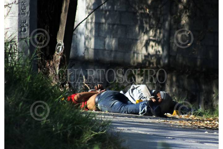 JIUTEPEC. MORELOS, 11NOVIEMBRE2018.- Dos hombres fueron ejecutados durante la madrugada de este día en la calle Sauces de la colonia Ampliación Las Fuentes. Las víctimas tenían las manos y los pies atados, estaban amordazados y de una edad aproximada de 30 años. Uno vestia pantalón de mezclilla y playera roja, y el otro pants y sudadera gris. En otro hecho violento cuatro personas murieron en el sur del estado, en el poblado de Coahuixtla en Amacuzac, donde hombres que viajaban en motocicletas dispararon contra los clientes de un billar. FOTO: MARGARITO PÉREZ RETANA /CUARTOSCURO.COM
