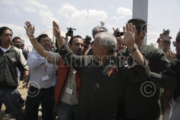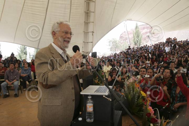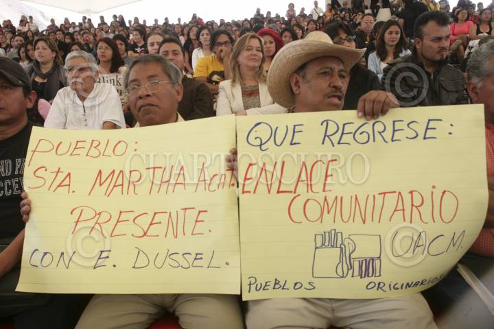 MÉXICO, D.F., 12MARZO2013.-Campesinos de la zona de Tláhuac y Chalco pidieron al Rector interino de la UACM, Enrique Dussel, se renueve el "Enlace Comunitario" durante la presentación del semestre 2013-1, en el auditorio denominado "El Ágora". FOTO: JUAN PABLO ZAMORA /CUARTOSCURO.COM