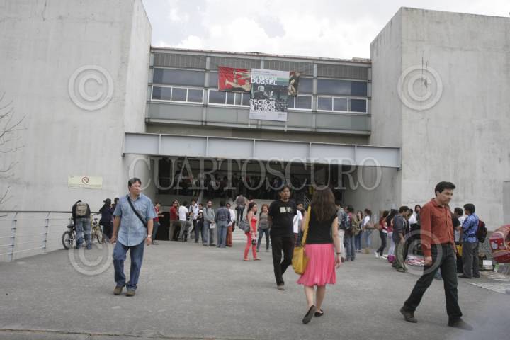 MÉXICO, D.F., 21MARZO2013.- Enrique Dussel, rector interino de la Universidad Autónoma de la Ciudad de México (UACM), acudió al Plantel del Centro Histórico para hacer un recorrido en las instalaciones, donde fue recibido por alumnos y maestros que le dieron la bienvenida como nuevo director. La comunidad universitaria le expresó su confianza para que logre levantar a la institución después de la crisis que causo la huelga. FOTO: DIEGO SIMÓN SÁNCHEZ /CUARTOSCURO.COM