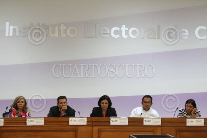 SALTILLO, COAHUILA, 08JUNIO2017.- Gabriela María de León Farías, consejera presidente del Instituto Electoral de Coahuila, María de los Ángeles, Rene de la Garza, Francisco Torres Rodríguez, y Karla Felix, consejeros ejecutivos, durante sesión donde se han recontado 63 por ciento de los paquetes electorales. FOTO: VENUSTIANO MADERO /CUARTOSCURO.COM