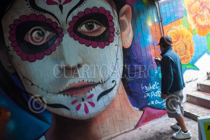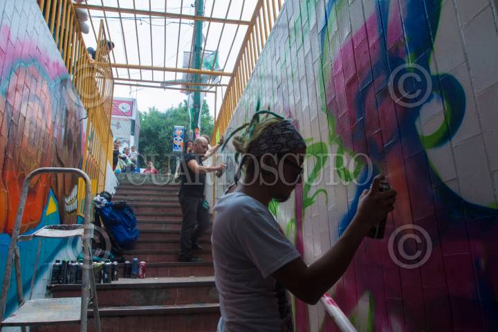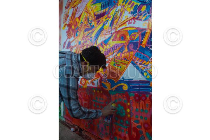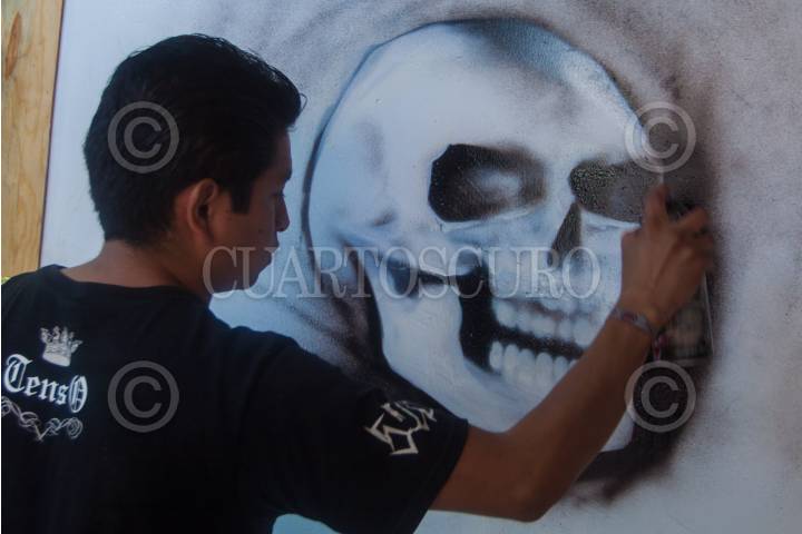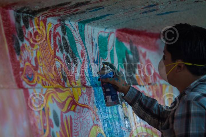 MÉXICO, 23JUNIO2012.- Jóvenes grafiteros plasmaron sus diseños en un bajopuente de Calzada de Tlalpan a la altura del metro San Antonio Abad como parte de la recuperación de espacios públicos realizado por el Consejo Ciudadano de Seguridad Pública. FOTO: RODOLFO ANGULO /CUARTOSCURO.COM