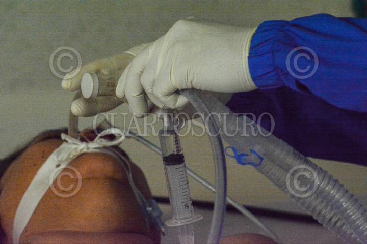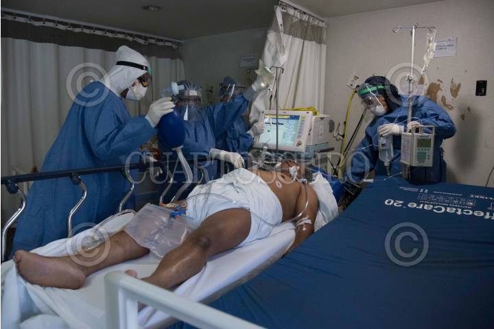 Personal médico del Hospital General de Atizapán "Dr. Salvador Gónzalez Herrejón atiende a un paciente diagnosticado con covid-19.