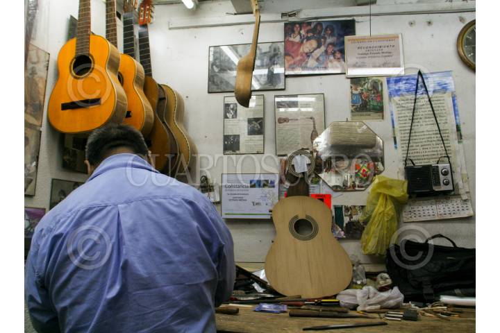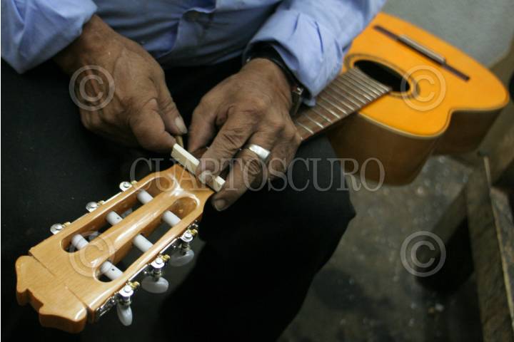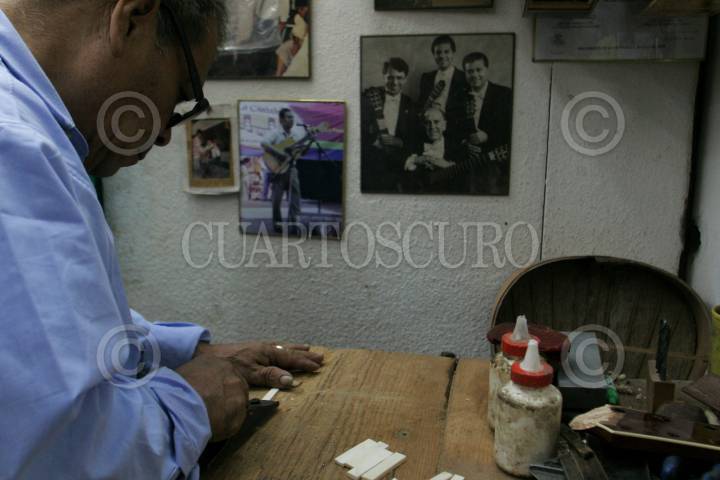 MÉXICO, D.F., 23SEPTIEMBRE2009.- Con mas de 50 años dedicado a la elaboración de instrumentos musicales, El maestro Estrada originario de Michoacan, lleva ya varias décadas ofreciendo su servicio en el mercado de Artesanías de la Ciudadela, lugar que lo ha hecho famoso ya que grandes personalidades de la música recurren a el para la elaboración de guitarras violines y requintos. FOTO: ENRIQUE ORDÓÑEZ/CUARTOSCURO.COM