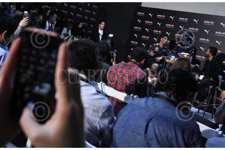 CIUDAD DE MÉXICO, 26OCTUBRE2016.- El piloto de carreras australiano Daniel Ricciardo, perteneciente a la escudería Red Bull Racing de Fórmula 1, ofreció conferencia ante medios de comunicación en donde anunció su participación en el Gran Premio de México 2016. FOTO: MARÍA JOSÉ MARTÍNEZ /CUARTOSCURO.COM