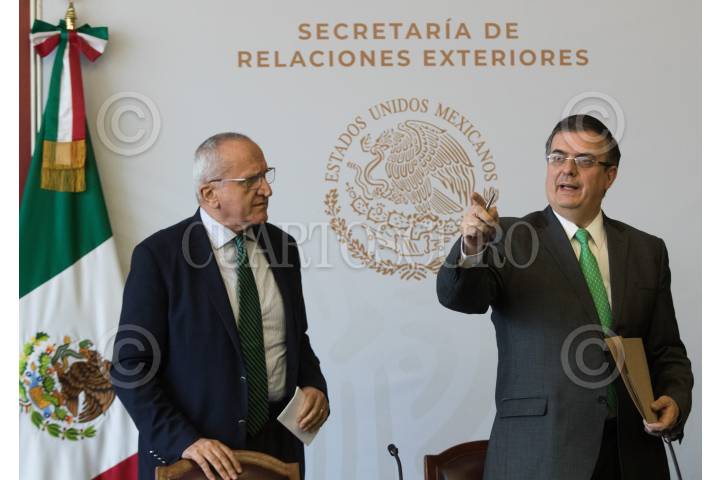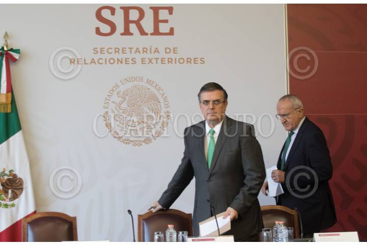CIUDAD DE MÉXICO, 15JULIO2019.- Marcelo Ebrard Casaubón, secretario de Relaciones Exteriores, y Jesús Seade, subsecretario para América del Norte, ofrecieron una rueda de prensa para hablar sobre las redadas que ha planteado realizar el gobierno de Estados Unidos en contra de migrantes, el canciller precisó que muy pocos mexicanos han sido afectados por estas medidas, sin embargo, detallo el plan que tiene el gobierno mexicano para apoyar los connacionales. La administración de Trump ha señalado que hasta un millón de personas podrían ser deportada en estas acciones. FOTO: MOISÉS PABLO /CUARTOSCURO.COM