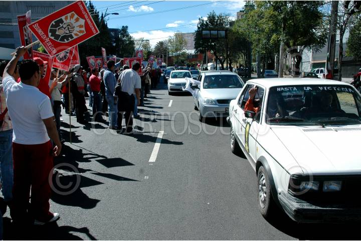 MÉXICO, D.F., 04DICIEMBRE2009.- Un grupo reducido de simpatizantes y miembros del Sindicato Mexicano de Electricistas marcharon desde el cruze de Constituyentes y Reforma con destino al Monumento a la Revolución como parte de las acciones de resistencia que realizan para exigir la derogación del decreto de extinción de Luz y Fuerza del Centro. FOTO: RODOLFO ANGULO/CUARTOSCURO.COM