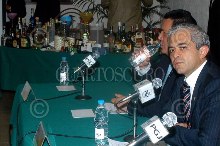 MÉXICO, D.F., 24NOVIEMBRE2008.- Miguel Angel Mancera, Procurador capitalino dio conferencia de prensa con referencia al decomiso de Licores adulterados el pasado viernes en la zona de Tepito FOTO: JULIETA MORA/CUARTOSCURO.COM