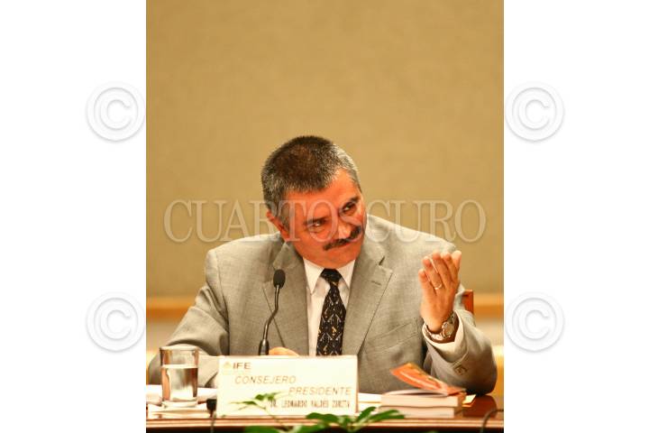 MÉXICO, D.F., 18JUNIO2008.- El consejero presidente Leonardo Valdés Zurita, durante la sesión de dicho Instituto, donde se determino una sanción de 894 mil 30 pesos al PRD, por violar el Cofipe al usar la frase "presidente legítimo" en referencia a Andrés Manuel López Obrador. FOTO: ISAAC ESQUIVEL/CUARTOSCURO.COM