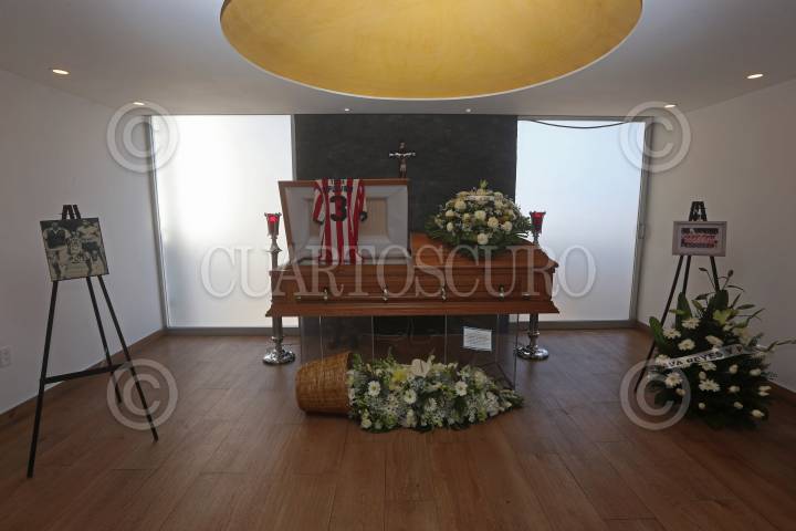 Los restos del ex futbolista Guillermo “Tigre” Sepúlveda, durante el funeral, mismo que se llevo a cabo en la Funeraria Gayosso de Avenida México.