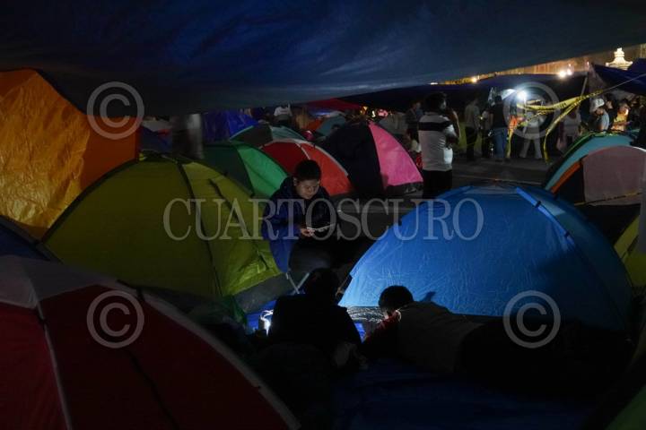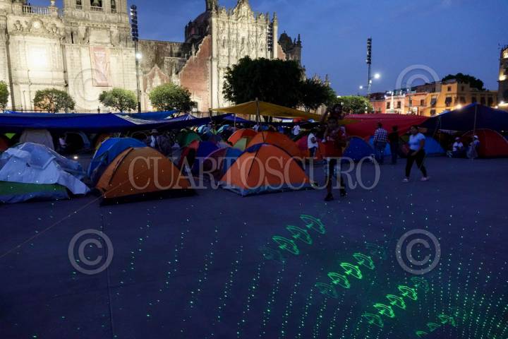 CIUDAD DE MÉXICO, 15MAYO2025.- Maestros de la Coordinadora Nacional de Trabajadores de la Educación (CNTE) instalaron un plantón en el zócalo capitalino como parte de su huelga nacional en la que exigen la abolición de las reformas educativas de 2007 y 2019, y mejores condiciones laborales. FOTO: MARIO JASSO/CUARTOSCURO.COM