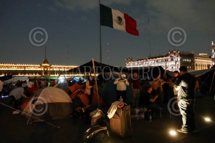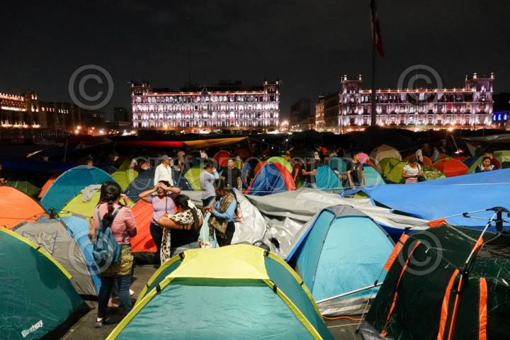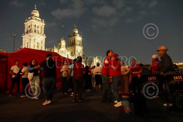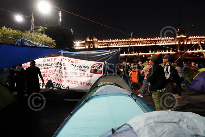 CIUDAD DE MÉXICO, 19MARZO2025.- Maestras y maestros de la Coordinadora Nacional de Trabajadores de la Educación (CNTE) se instalaron en su totalidad en la explanada del Zócalo capitalino cómo parte de su paro de labores de 72 horas. Las acciones son en demanda de que el Gobierno federal presente pruebas de que ha eliminado su iniciativa de reforma a la Ley del ISSSTE. FOTO: GALO CAÑAS/CUARTOSCURO.COM