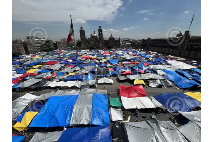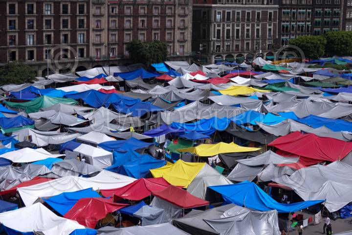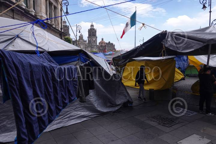 CIUDAD DE MÉXICO, 28MAYO2025.- Maestros de la Coordinadora Nacional de Trabajadores de la Educación (CNTE) se mantienen en plantón por dos semanas en el Zócalo capitalino en donde exigen atención a sus demandas como la abrogación de la aprocación a la Ley del ISSSTE del 2007 y las Reformas Educativa y laboral. Se estima que esta tarde haya nuevas respuestas por parte de la Secretaría de Gobernación en una reunión con los dirigentes de la CNTE. FOTO: GRACIELA LÓPEZ/CUARTOSCURO.COM