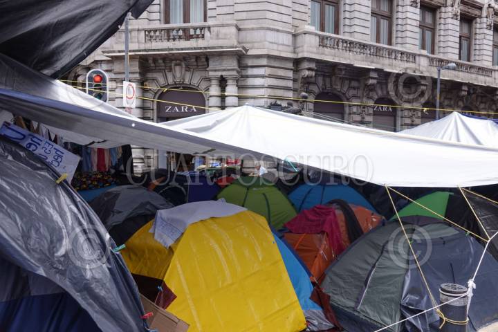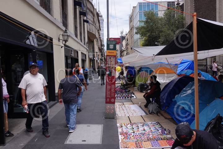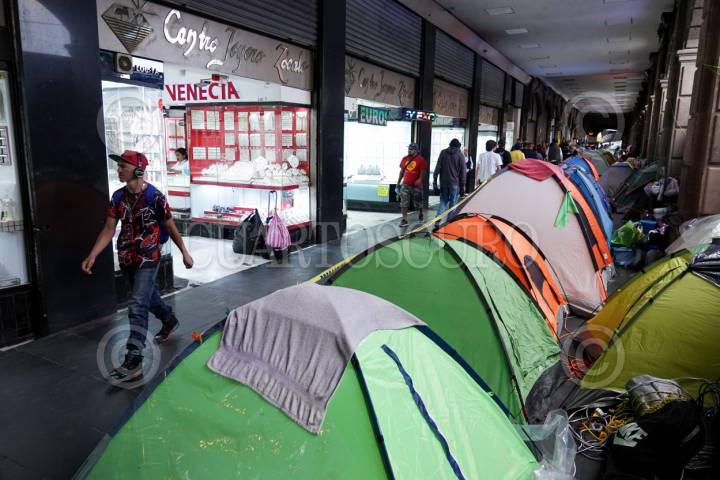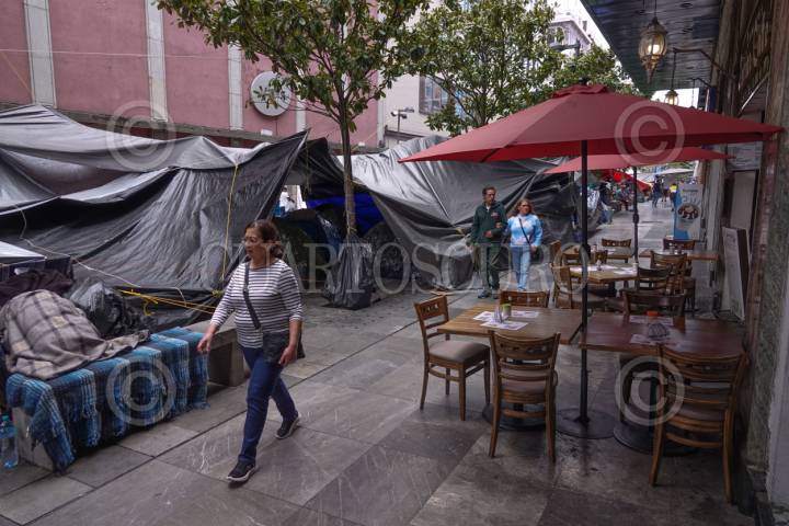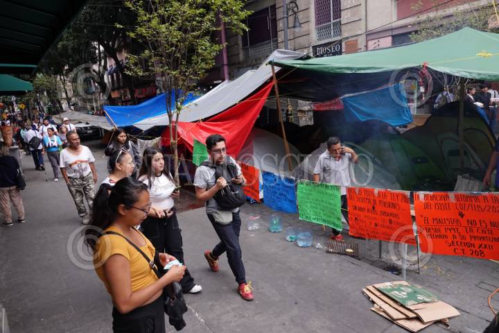 CIUDAD DE MÉXICO, 28MAYO2025.- Maestros de la Coordinadora Nacional de Trabajadores de la Educación (CNTE) se mantienen en plantón en calles aledañas al Zócalo capitalino, en donde los transeúntes deben caminar por las banquetas y los comercios establecidos tienen poca actividad comercial. FOTO: GRACIELA LÓPEZ/CUARTOSCURO.COM