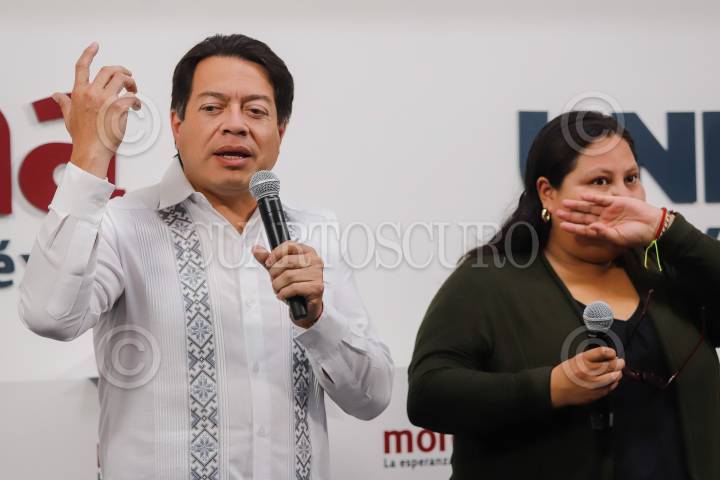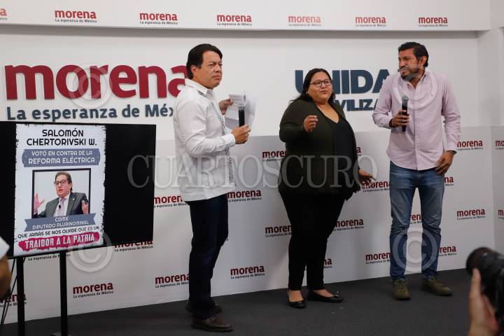 Mario Delgado y Citlalli Hernández, presidente y secretaria general, respectivamente, ofrecieron una conferencia de prensa en la cual se refirieron sobre la no aprobación de la Reforma Eléctrica, en la Cámara de Diputados.