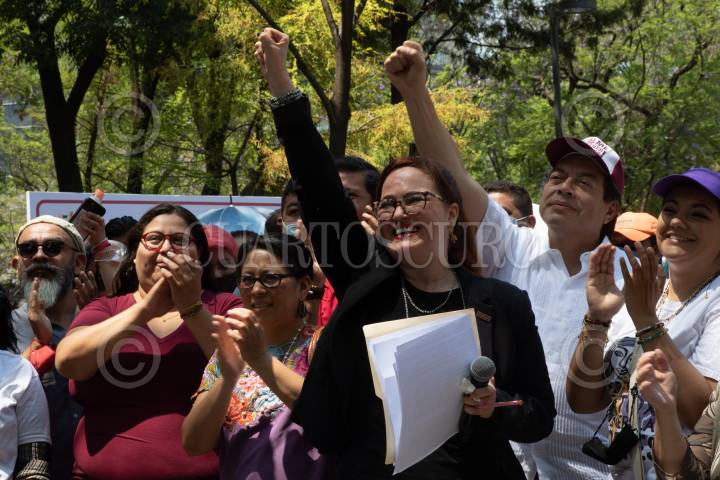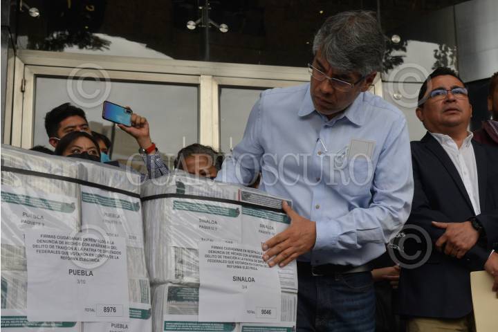 Tomás Pliego, presidente del Comité Ejecutivo estatal de Morena en la Ciudad de México, acudió a la Fiscalía General de la República a entregar decenas de paquetes con firmas recaudadas de ciudadanos en respaldo a la denuncia de hechos "con apariencia del delito de traición a la patria de diputados federales que votaron en contra de la reforma eléctrica".