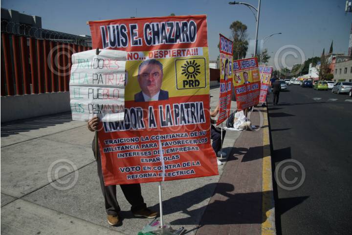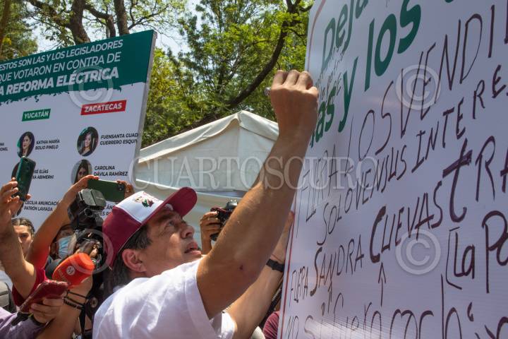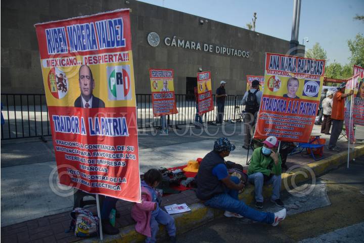 Simpatizantes de Morena se manifestaron al exterior de la Cámara de Diputados en contra de los legisladores que votaron en contra de la Reforma Eléctrica.