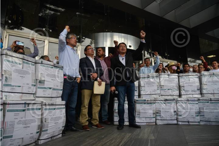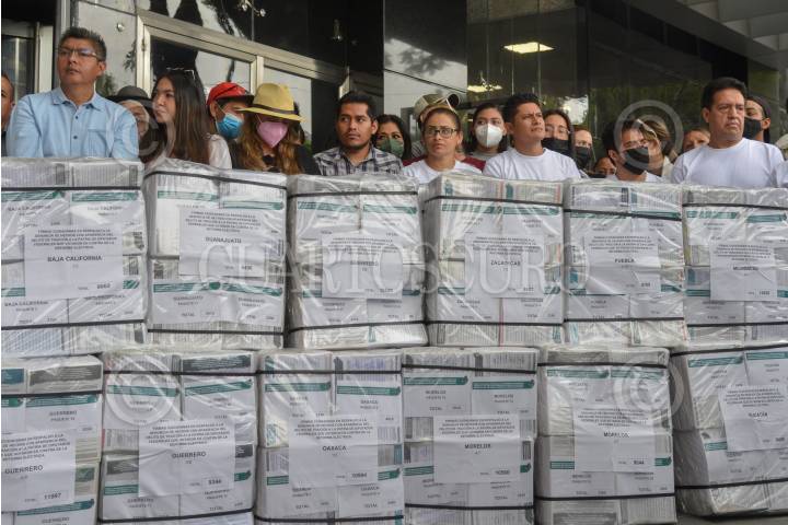 Simpatizantes de Morena entregaron decenas de paquetes con firmas recaudadas de ciudadanos en respaldo a la denuncia de hechos "con apariencia del delito de traición a la patria de diputados federales que votaron en contra de la reforma eléctrica".