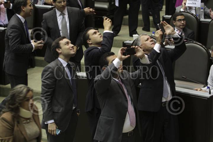 MÉXICO, D.F., 17OCTUBRE2013.- Diputados del PAN toman una foto al tablero de la votaciones, durante la sesión en la cámara de diputados donde se voto en lo general la Reforma Hacendaria. FOTO: GUILLERMO PEREA /CUARTOSCURO.COM