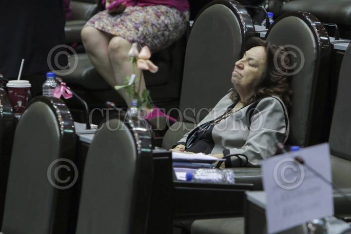 MÉXICO, D.F., 18OCTUBRE2013.- Juana Bonilla Jaime, diputada del PRD, dormita durante la sesión de ayer en la cámara de diputados en donde se votó en lo particular la Reforma Hacendaria. FOTO: GUILLERMO PEREA /CUARTOSCURO.COM
