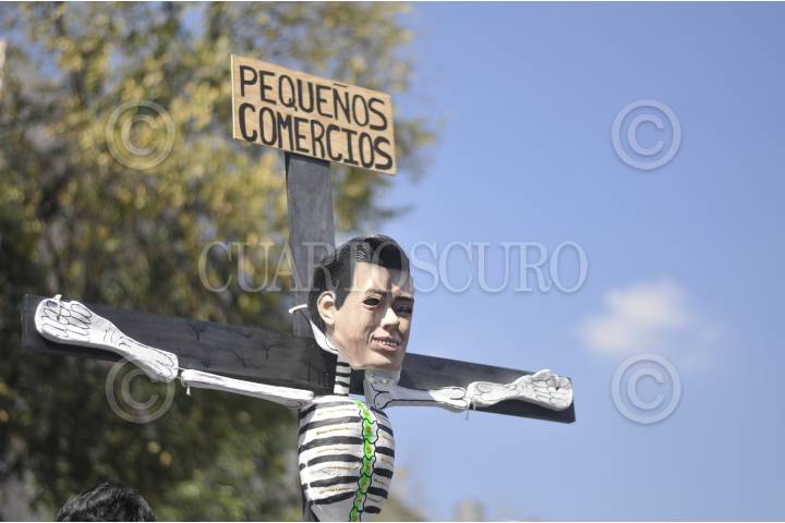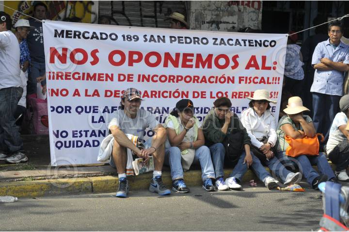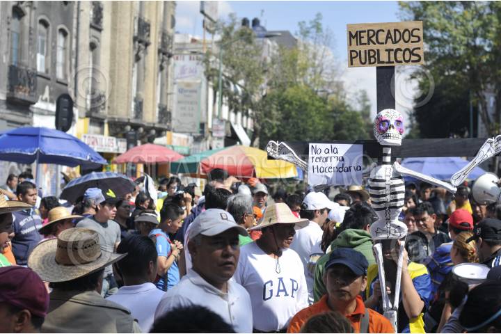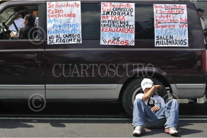 MÉXICO, D.F., 08NOVIEMBRE2013.- Comerciantes y locatarios de distintos mercados de la ciudad, se manifestaron sobre avenida Bucareli, afuera de la Secretaría de Gobernación en protesta por la reforma hacendaria que impulsa el gobierno federal. FOTO: DIEGO SIMÓN SÁNCHEZ / CUARTOSCURO.COM