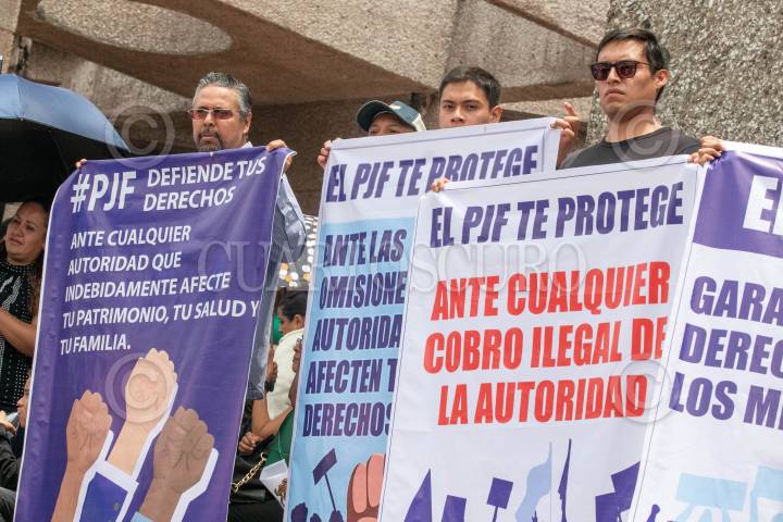 CIUDAD DE MÉXICO, 19AGOSTO2024.- Trabajadores del Poder Judicial de la Federación han iniciado un paro de labores en las diferentes sedes de este organismo esto en protesta de la llamada Reforma al Poder Judicial que promueve el Poder Ejecutivo y la cual se pretende aprobar en este mes de septiembre. Aunque la sede el Edificio de San Lázaro del PJF hubo un mitin afuera hay acceso para que se atiendan casos urgentes, según lo precisaron. FOTO: MOISÉS PABLO/CUARTOSCURO.COM