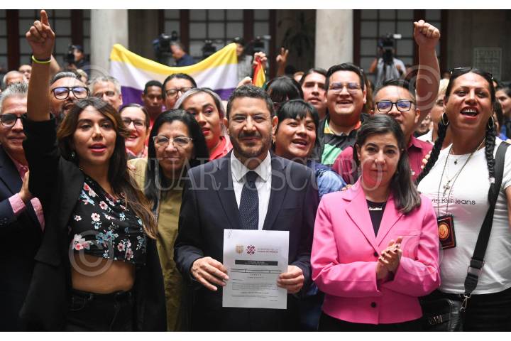 CIUDAD DE MÉXICO, 22AGOSTO2024.- El jefe del Gobierno de la Ciudad, Martí Batres Guadarrama, encabezó, esta mañana la publicación del decreto de Reformas para tipificar el delito de transfeminicidio en la Ciudad de México. Activistas, diputados y funcionarios de la Ciudad y el evento tuvo lugar en el patio central del Palacio del Ayuntamiento. FOTO: GOBIERNO DE LA CIUDAD/CUARTOSCURO.COM
