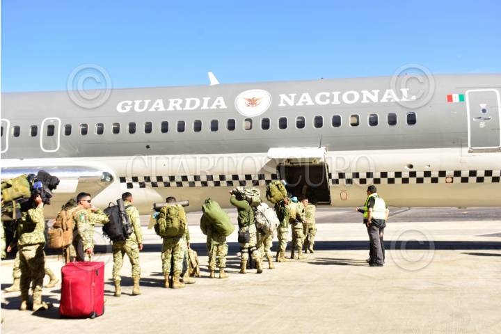 REYNOSA, TAMAULIPAS, 04ENERO2024.- 100 efectivos de las Fuerzas Especiales del Ejército Mexicano arribaron este jueves a Reynosa, Tamaulipas, para inhibir los índices delictivos y sumarse a los esfuerzos que realizan las autoridades locales en esa franja fronteriza. Este grupo de militares salieron del Aeropuerto Internacional de la Ciudad de México, a bordo de una aeronave B-737 de la Guardia Nacional y arribaron al Aeropuerto Internacional “General Lucio Blanco” de Reynosa, para incorporarse con el resto de las tropas en el reforzamiento de la seguridad, propiciando en todo momento un ambiente de tranquilidad en la población. FOTO: SEDENA/CUARTOSCURO.COM