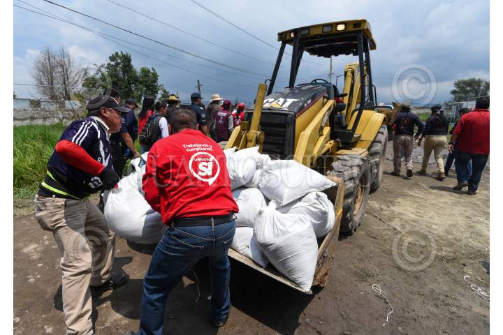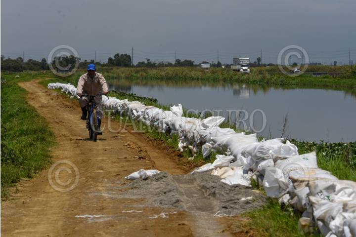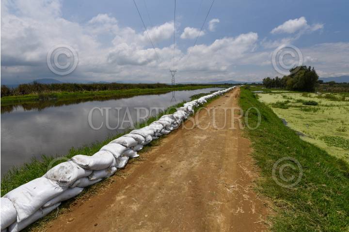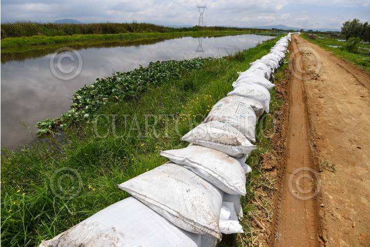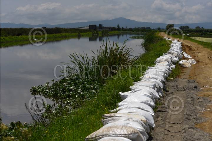 SAN MATEO ATENCO, ESTADO DE MÉXICO, 02SEPTIEMBRE2024.- Ante el aumento del cause del río Lerma por las lluvias que se han registrado en los últimos días, se lleva a cabo el encostalamiento de las orillas de este cuerpo de agua en su paso por el municipio de San Mateo Atenco como trabajos preventivos y así evitar un desbordamiento, un trabajo de manera conjunta con el municipio, personal de Gobierno Estatal, Ejército y CONAGUA. Los puntos designados a reforzarse son el barrió la Concepción, barrio de Guadalupe y barrio de San Pedro siendo los lugares más vulnerables. FOTO: CRISANTA ESPINAL AGUILAR /CUARTOSCURO.COM
