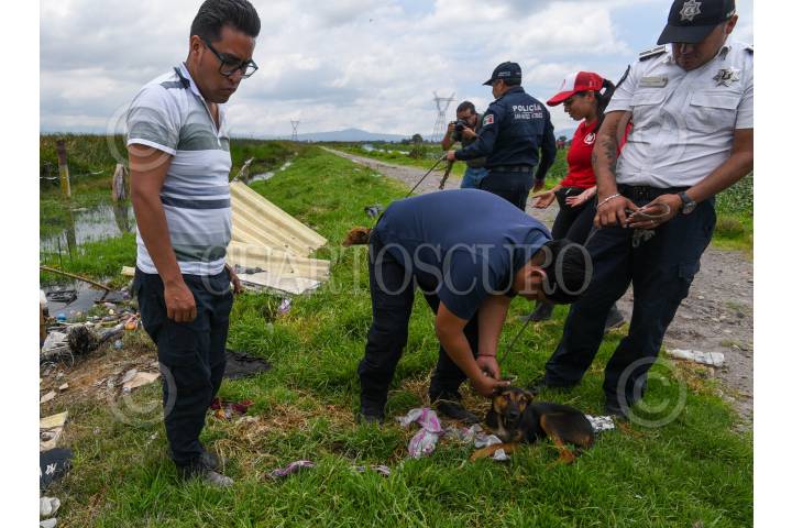 SAN MATEO ATENCO, ESTADO DE MÉXICO, 02SEPTIEMBRE2024.- Dos perritos fueron rescatados por personal de San Mateo Atenco mientras se realizaba un recorrido en las orillas del río Lerma, se encontraban en una construcción abandonada corriendo peligro. FOTO: CRISANTA ESPINOSA AGUILAR /CUARTOSCURO.COM