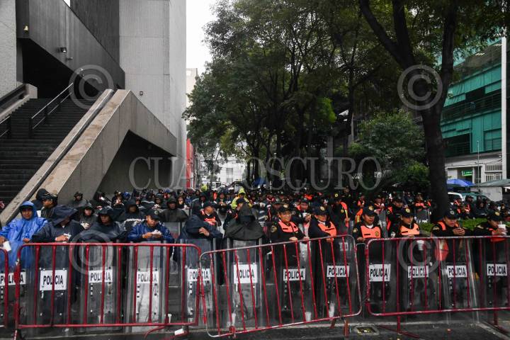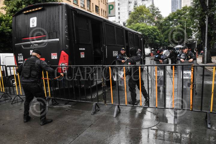 CIUDAD DE MÉXICO, 10SEPTIEMBRE2024.- Elementos de la Secretaria de Seguridad Ciudadana (SSC) refuerzan las inmediaciones del Senado de la República ante la eventuales protestas de manifestantes del Poder Judicial. Se prevé que hoy durante la sesión ordinaria se de primera lectura a la Reforma Judicial luego de ser aprobada en las comisiones de Puntos Constitucionales y Estudios Legislativos de la Cámara Alta. FOTO: MARIO JASSO/CUARTOSCURO.COM