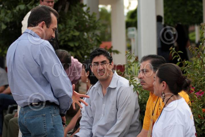 OAXTEPEC, MORELOS, 04DICIEMBRE2009.- El dirigente nacional de PRD Jesús Ortega dialoga con algunos simpatizantes tras el receso de las instalaciones de las mesas de trabajo en el XII Congreso Rafundación. FOTO: MARCO POLO GUZMÁN HERNÁNDEZ/CUARTOSCURO.COM