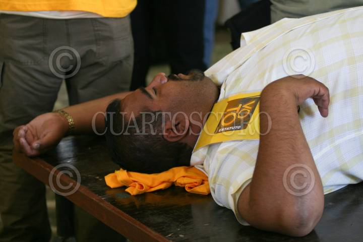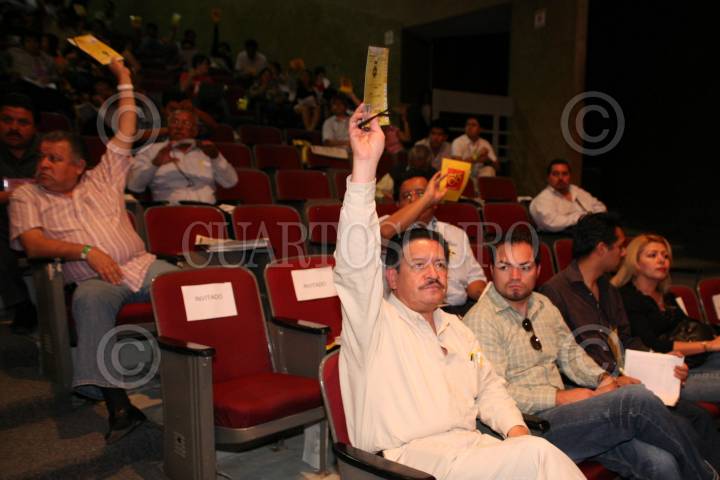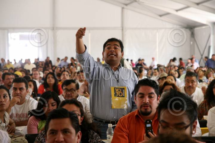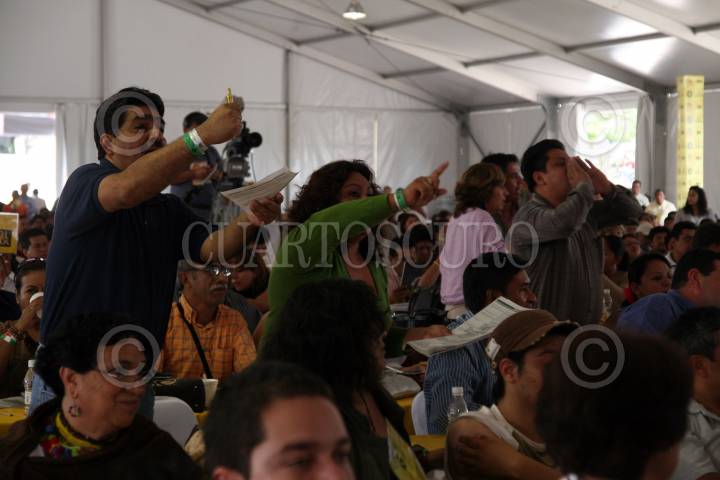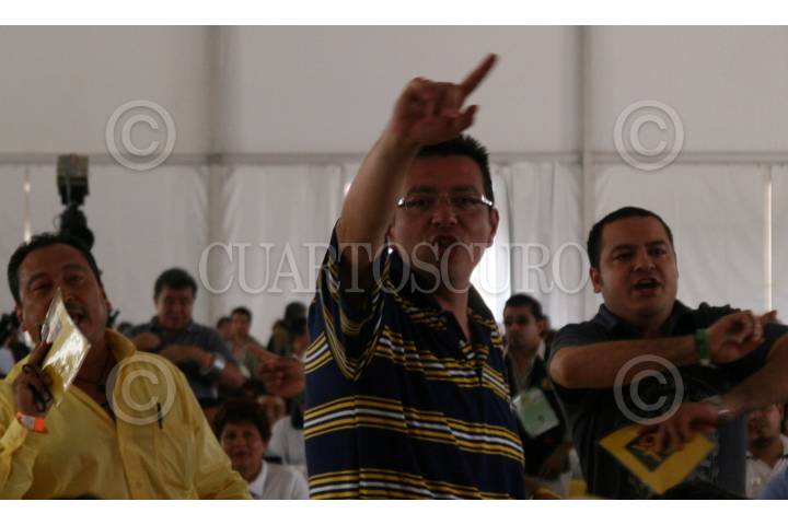 OAXTEPEC, MORELOS, 05DICIEMBRE2009.- Las inconformidades en las mesas de trabajos de Estatutos continúan dándose hasta con palabras altisonantes. En esta tarde varios integrantes de representes del Comité directivo estatal del PRD Tabasco y encabezado por Juan Manuel Focil tomaron las tribunas a gritos de "Sinverguenzas, vendidos, todo lo arreglan en lo oscurito". FOTO: MARCO POLO GUZMÁN HERNÁNDEZ/CUARTOSCURO.COM