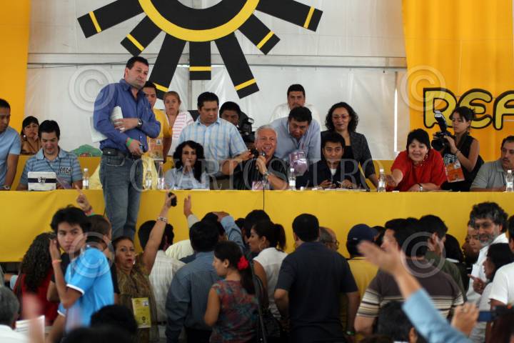 OAXTEPEC, MORELOS, 04DICIEMBRE2009.- La mesa de trabajo sobre Línea Política quedo formalmente instalada la tarde de hoy en el marco del PRD XII Congreso Refundación. FOTO: MARCO POLO GUZMÁN HERNÁNDEZ/CUARTOSCURO.COM
