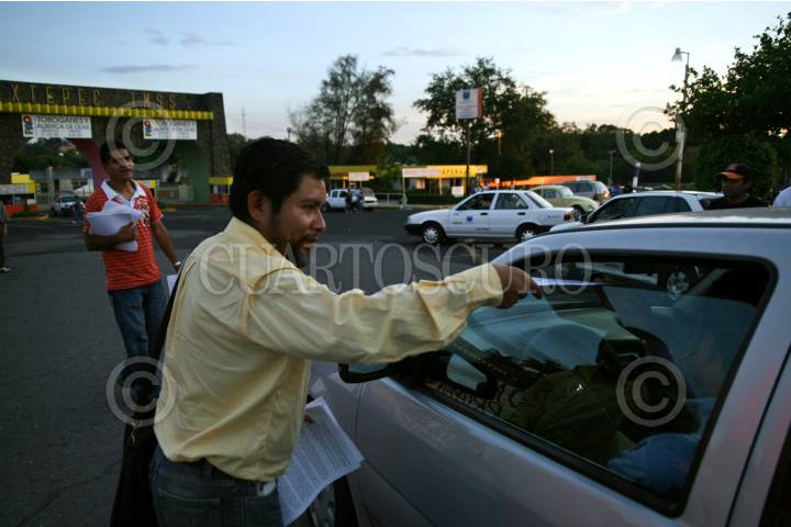 OAXTEPEC, MORELOS, 05DICIEMBRE2009.- El escritor y autor del libro "Sobreviviendo", Dionicio Castillo Gaspar repartiendo el manifiesto en donde reza que esta en contra de los trabajos que se están desarrollando para fraguar la alianza entre la derecha que representa el PAN, PRI con la izquierda PRD. FOTO: MARCO POLO GUZMÁN HERNÁNDEZ/CUARTOSCURO.COM