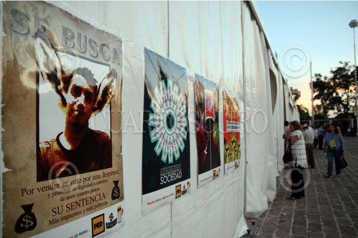 OAXTEPEC, MORELOS, 05DICIEMBRE2009.- Carteles colocados en los alrededores de las carpas en el marco del PRD XII Congreso Refundacion. FOTO: MARCO POLO GUZMÁN HERNÁNDEZ/CUARTOSCURO.COM