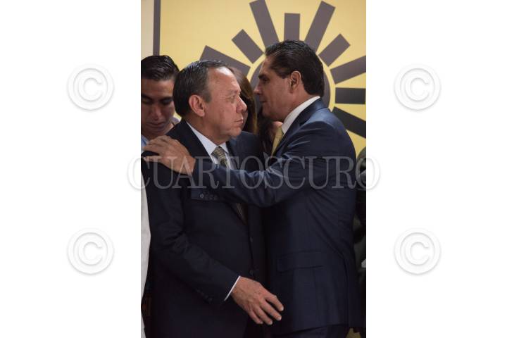 CIUDAD DE MÉXICO. 03OCTUBRE2018.- El perredista Jesús Zambrano, y Silvano Aureoles, gobernador de Michoacán, durante la conferencia de prensa en la que se presentó la Comisión de Diálogo Nacional que tendrá como objetivo la dirección de los trabajos referente a la refundación del partido como fuerza de oposición ante la llegada del nuevo gobierno federal. Por otra parte también plantea la renovación del Comité Ejecutivo Nacional. FOTO: MARIO JASSO /CUARTOSCURO.COM
