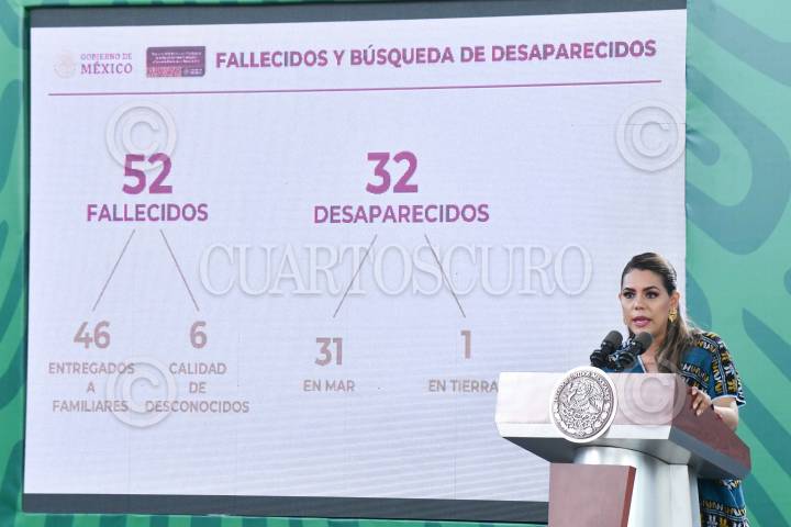 ACAPULCO, GUERRERO, 20DICIEMBRE2023.- Evelyn Salgado, gobernadora de Guerrero, durante su intervención en la conferencia de prensa matutina realizada en la 12 Región Naval, en la que se mostraron los avances en la reconstrucción de Acapulco a 57 días del paso del huracán Otis. FOTO: MARIO JASSO/CUARTOSCURO.COM